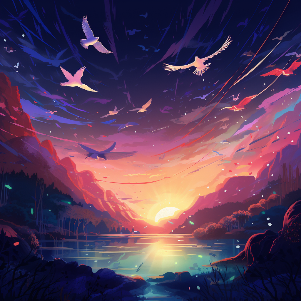 A beautiful illustration birds flying at night disne