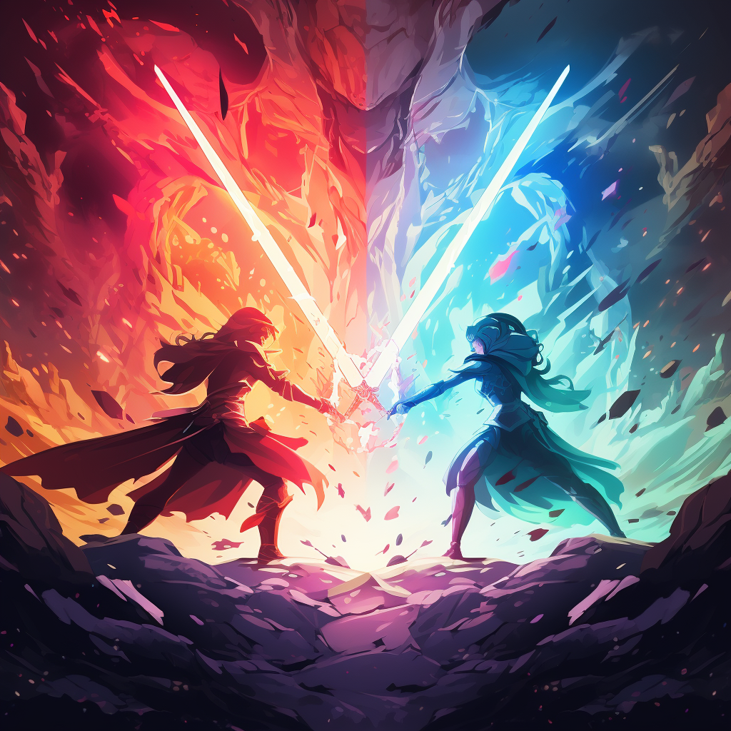 A beautiful illustration two knights clashing disney