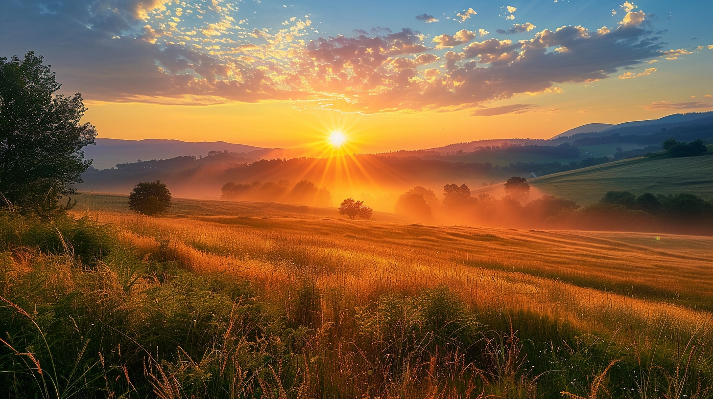 a beautiful landscape with sunrise