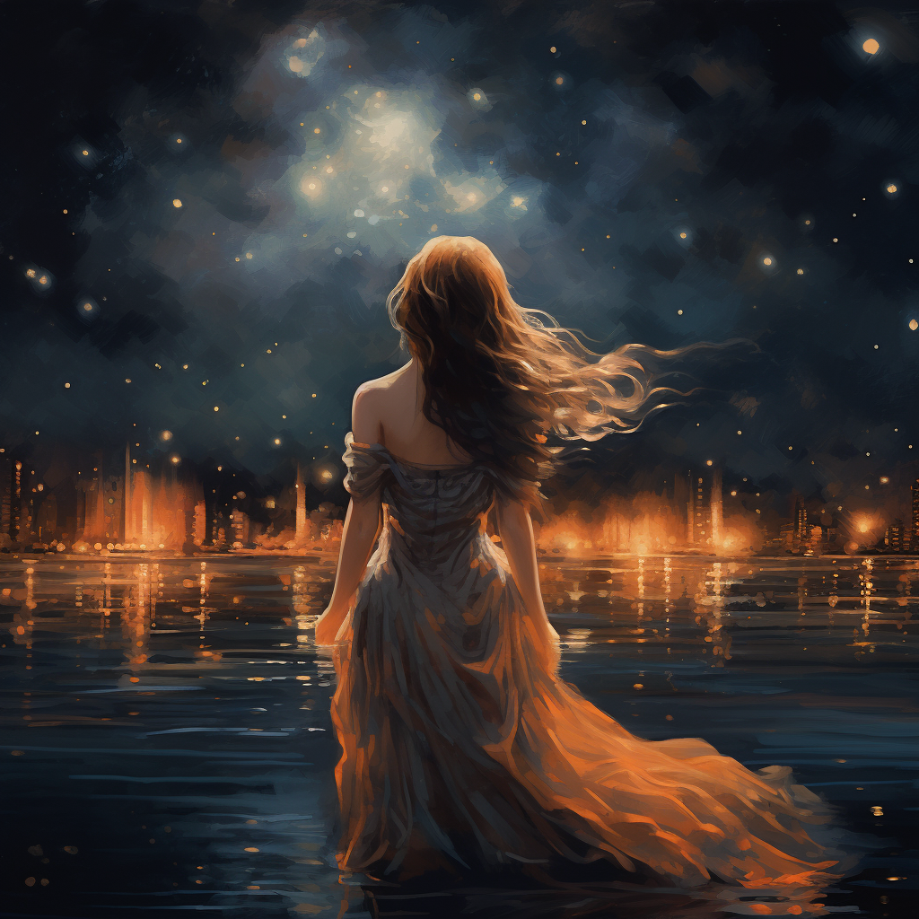 A girl standing in the night with starry sky in the