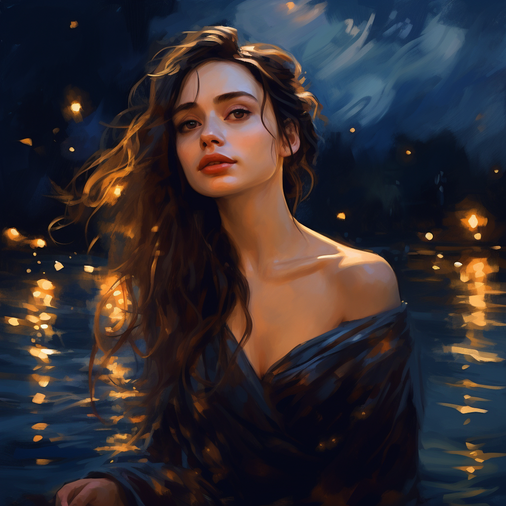 A girl standing in the night with starry sky in the