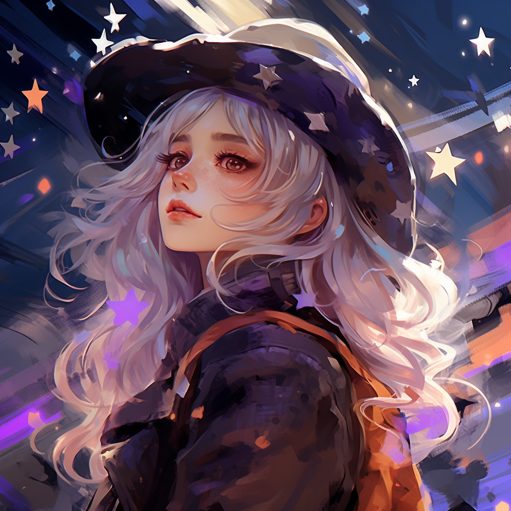 A girl with white hair and long hair wearing a black