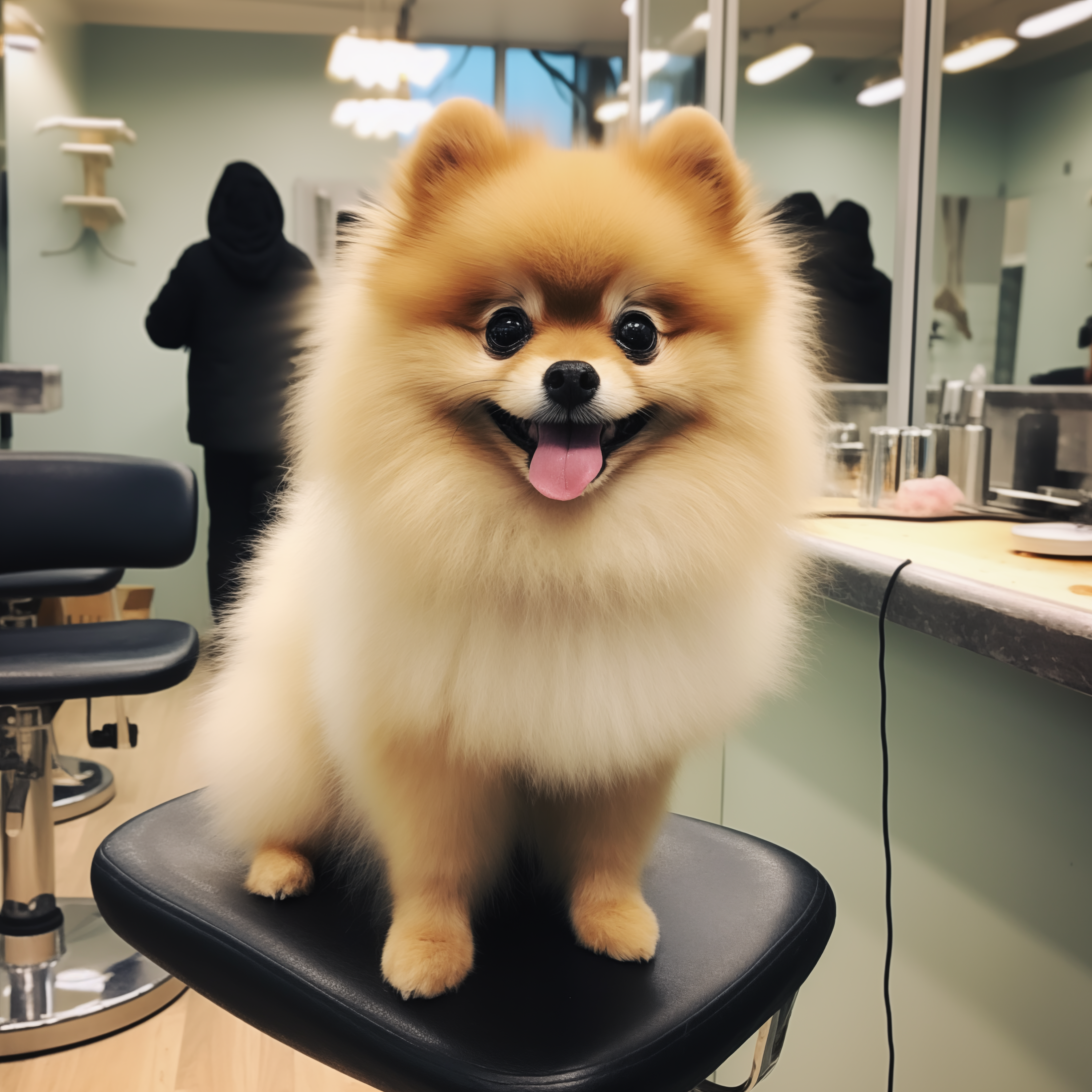 A mini spitz breed dog that is at the hairdresser's