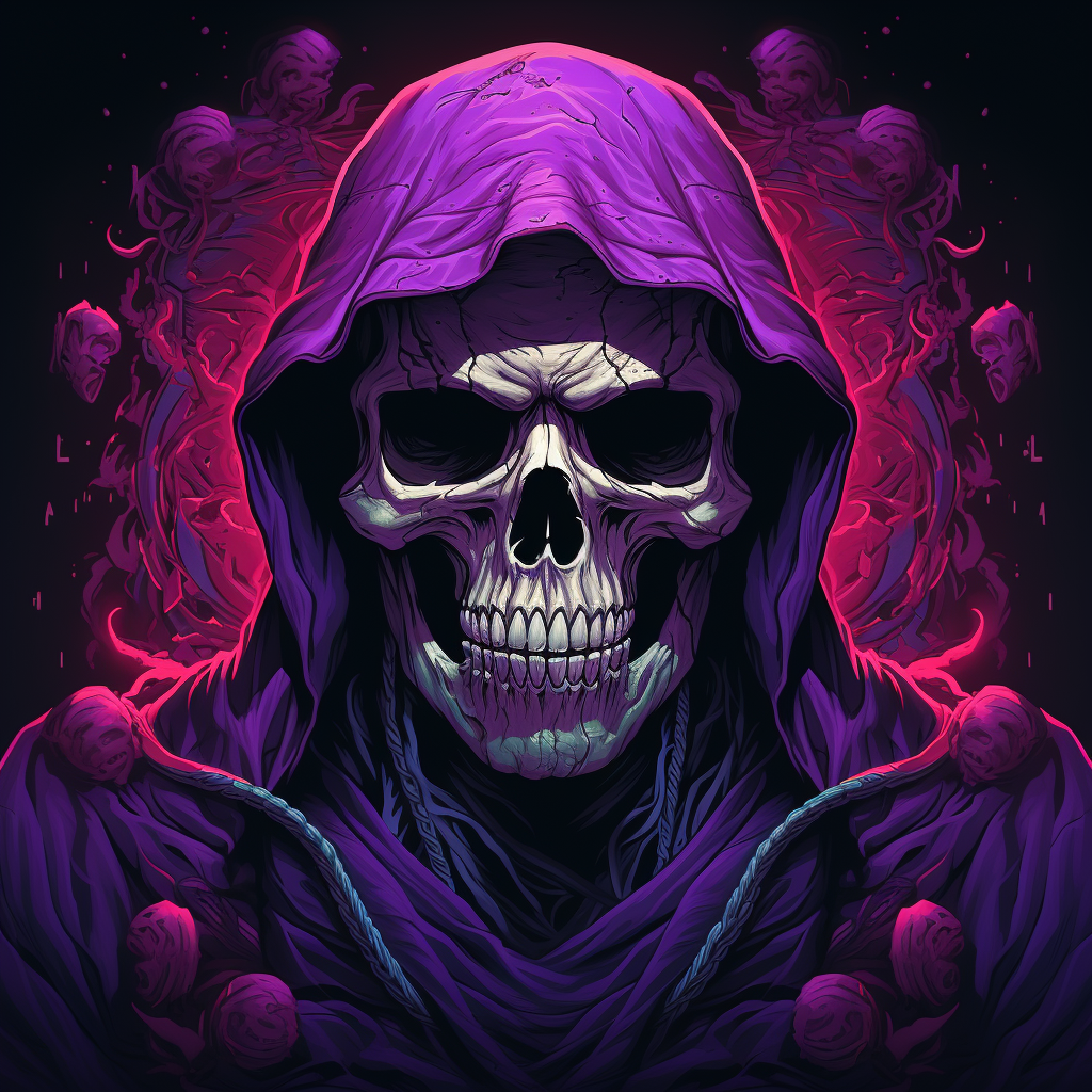 A skull wearing a black mask and holding something i