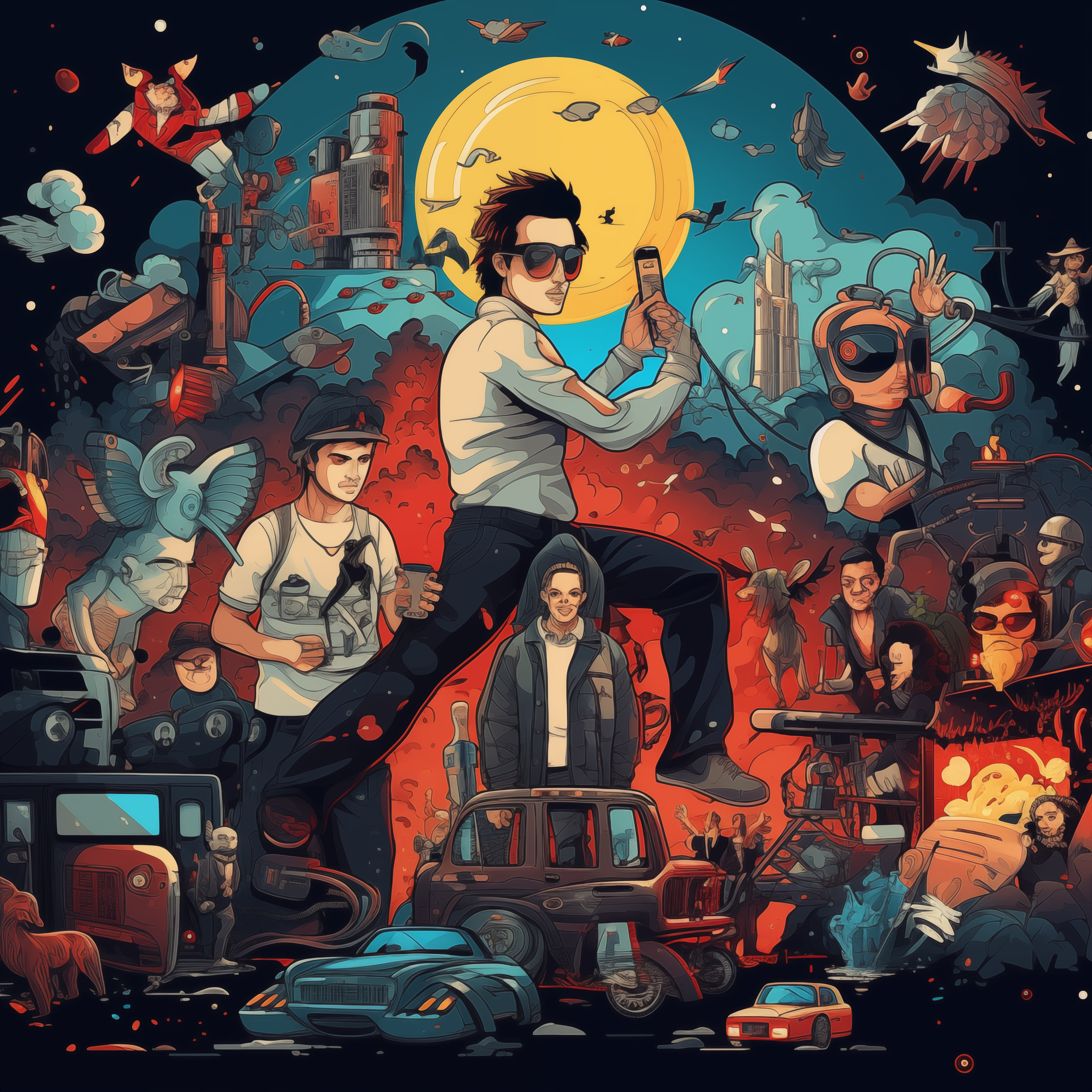 Girl in the sun night sky in the style of anime art
