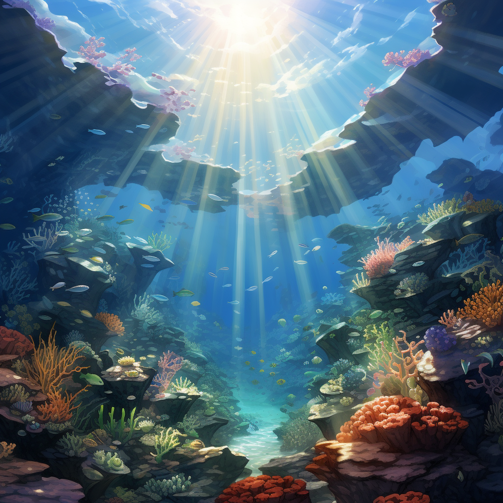 Anime coral reef god rays disney animation