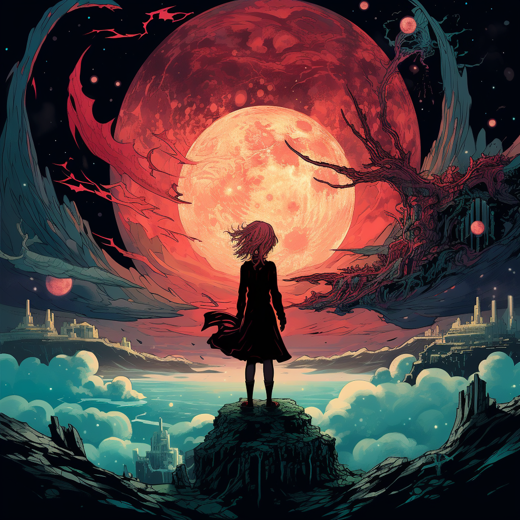 female astronaut in a pink suit standing on the moon, in the background space and stars, science fiction, pastel colors, photorealistic, udh image