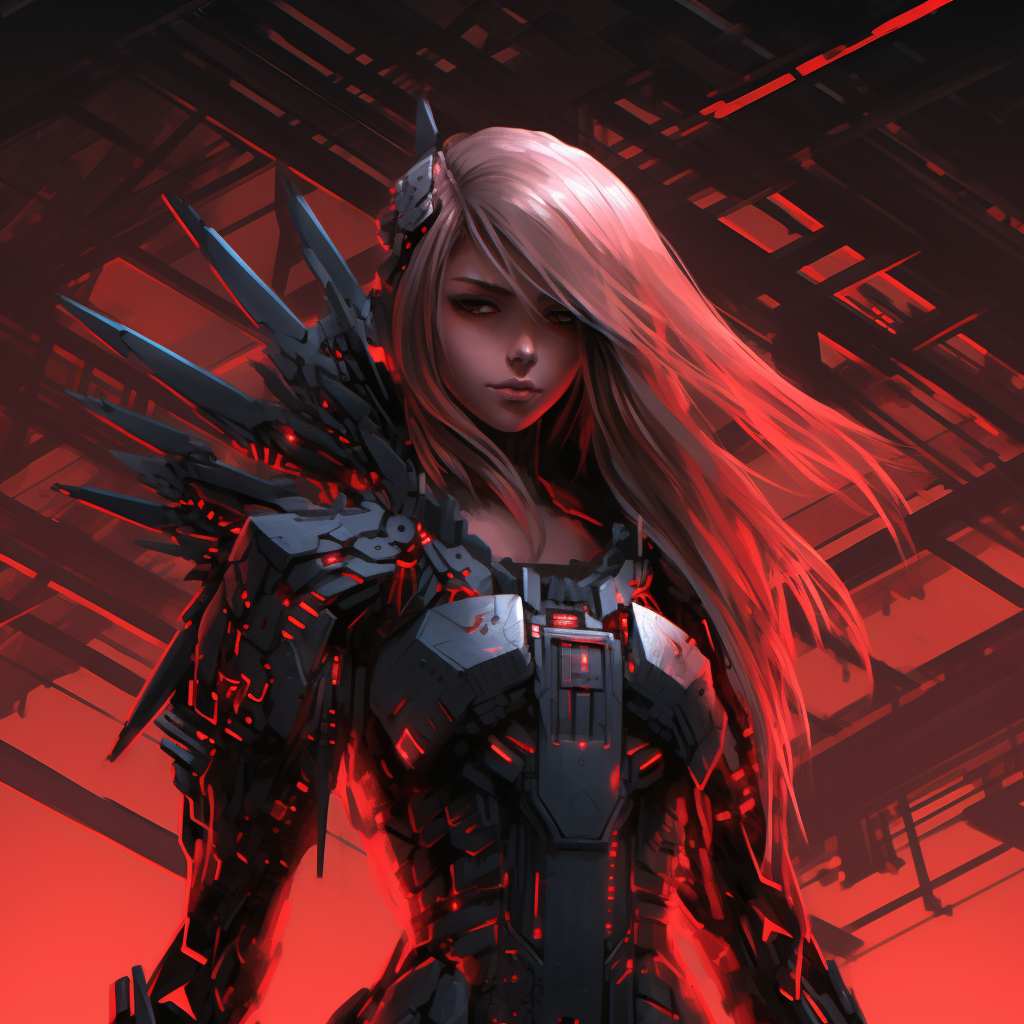 Cyberpunk anime angel red highlights 2d vector
