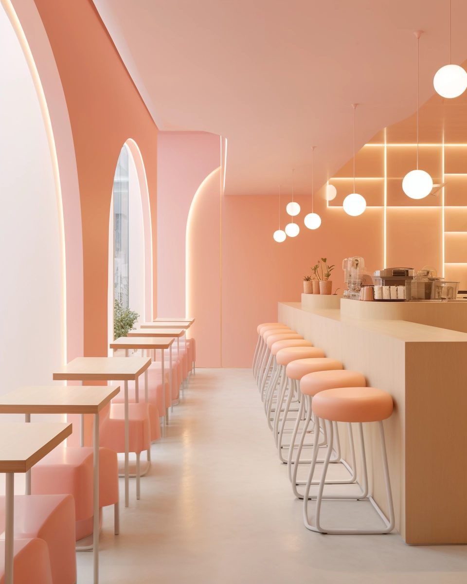 Pastel Backhoe ,minimalist cafe,design by Vaillo and Irigaray Architects