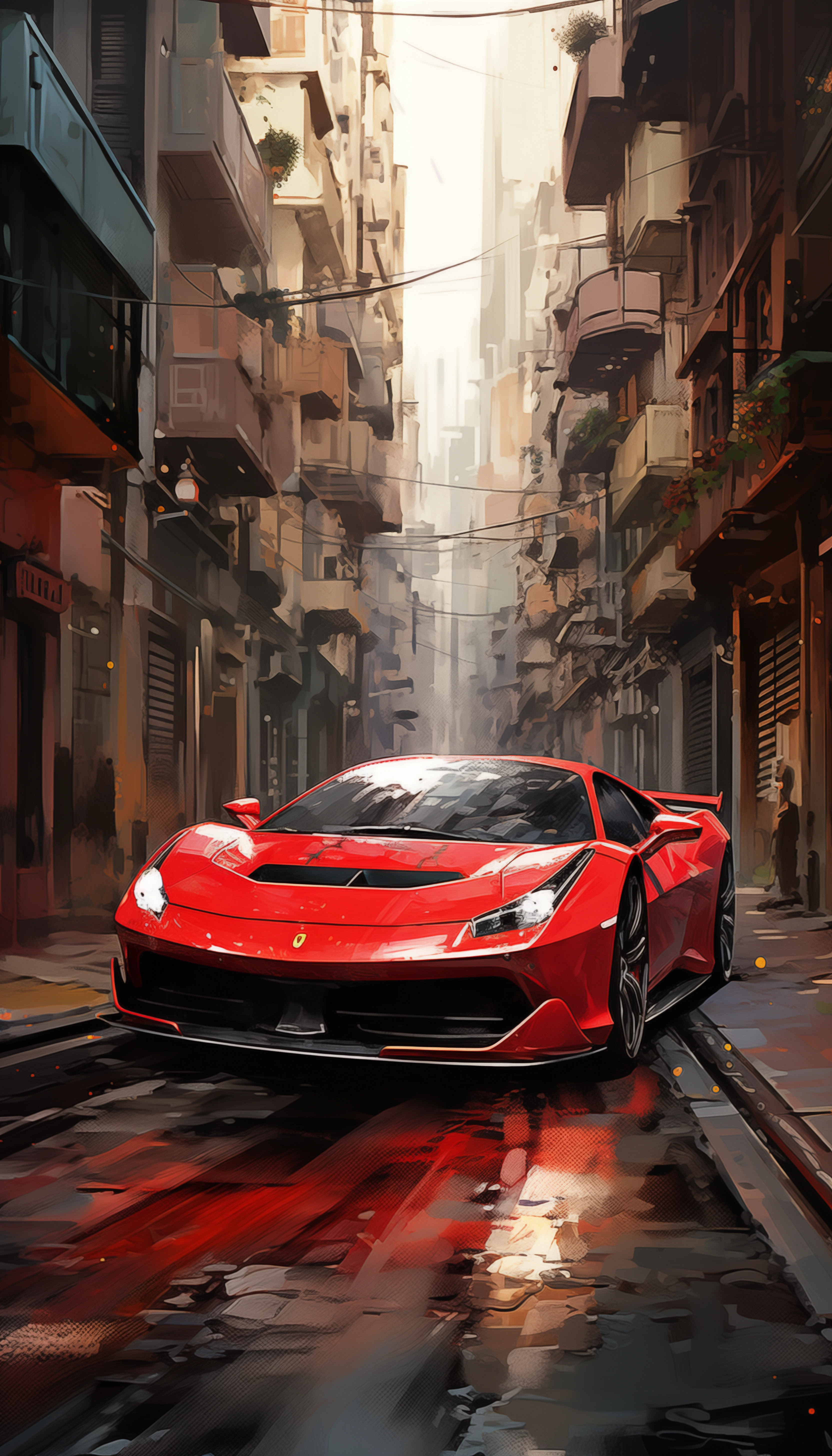 an alley in the city of mushroom, colorful neon and buildings, a cozy bar with hanging lanterns is on one side, there's an overcast sky with raindrops shining down onto it, the street looks wet from puddles of water, there's lush green plants around, anime art style, vibrant colors, detailed