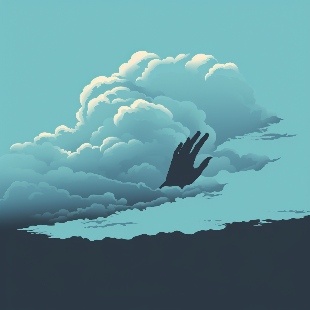 Silhouette of a hand reaching out of a cloud 2D vect