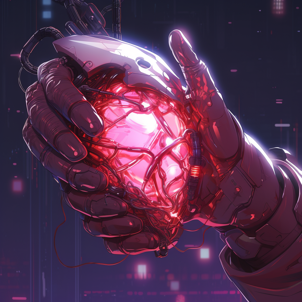 Synthetic heart being held in a robotic hand in the