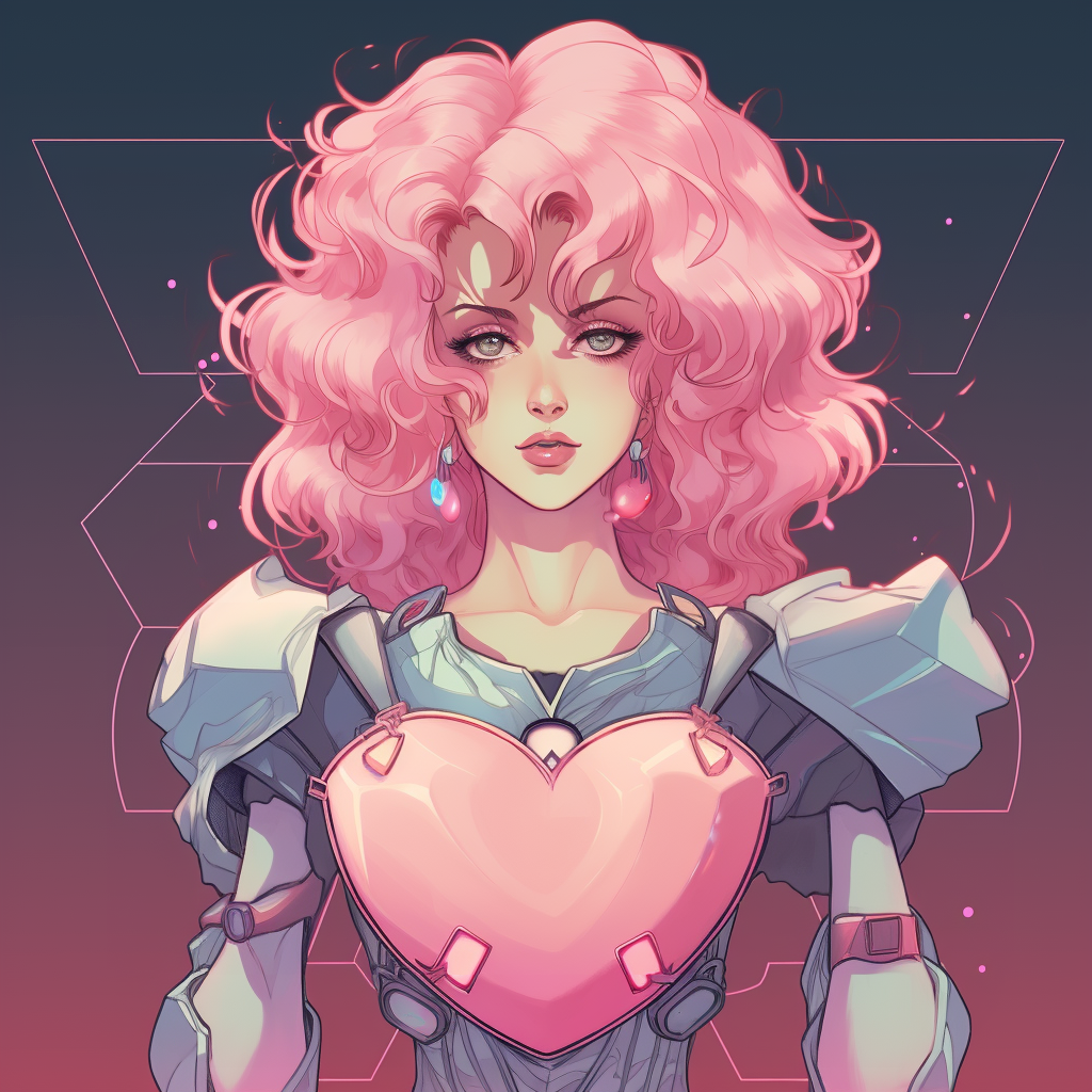 Synthetic heart in the style of 1990s retro anime