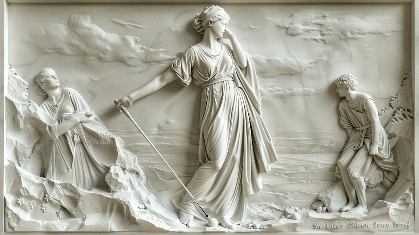 Venus is playing golf swing,everything is white,grace, relief, Michelangelo's artistic style,8k
