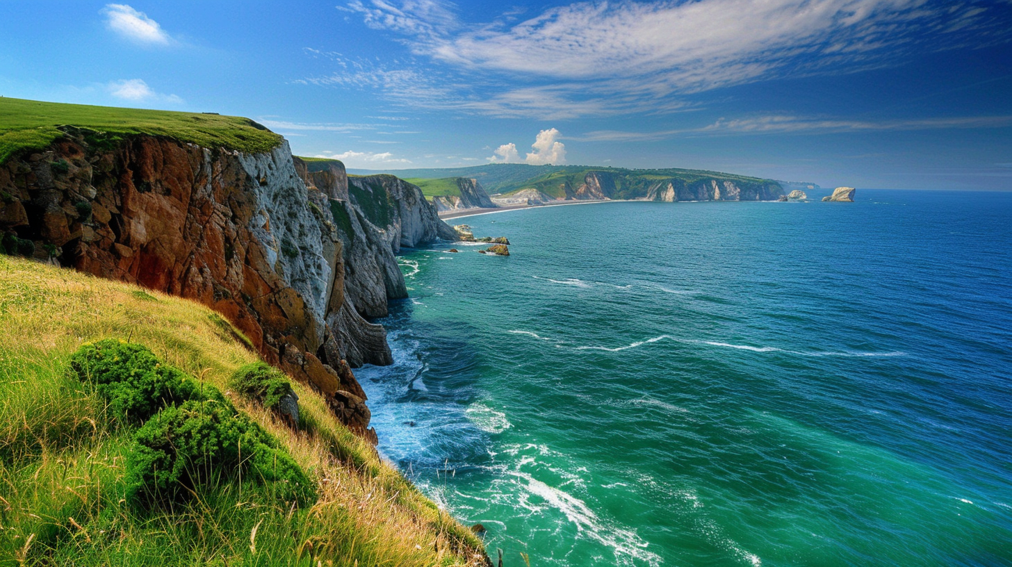 Wallpaper, hd, landscape, nature, ocean, cliff, green, beautiful,